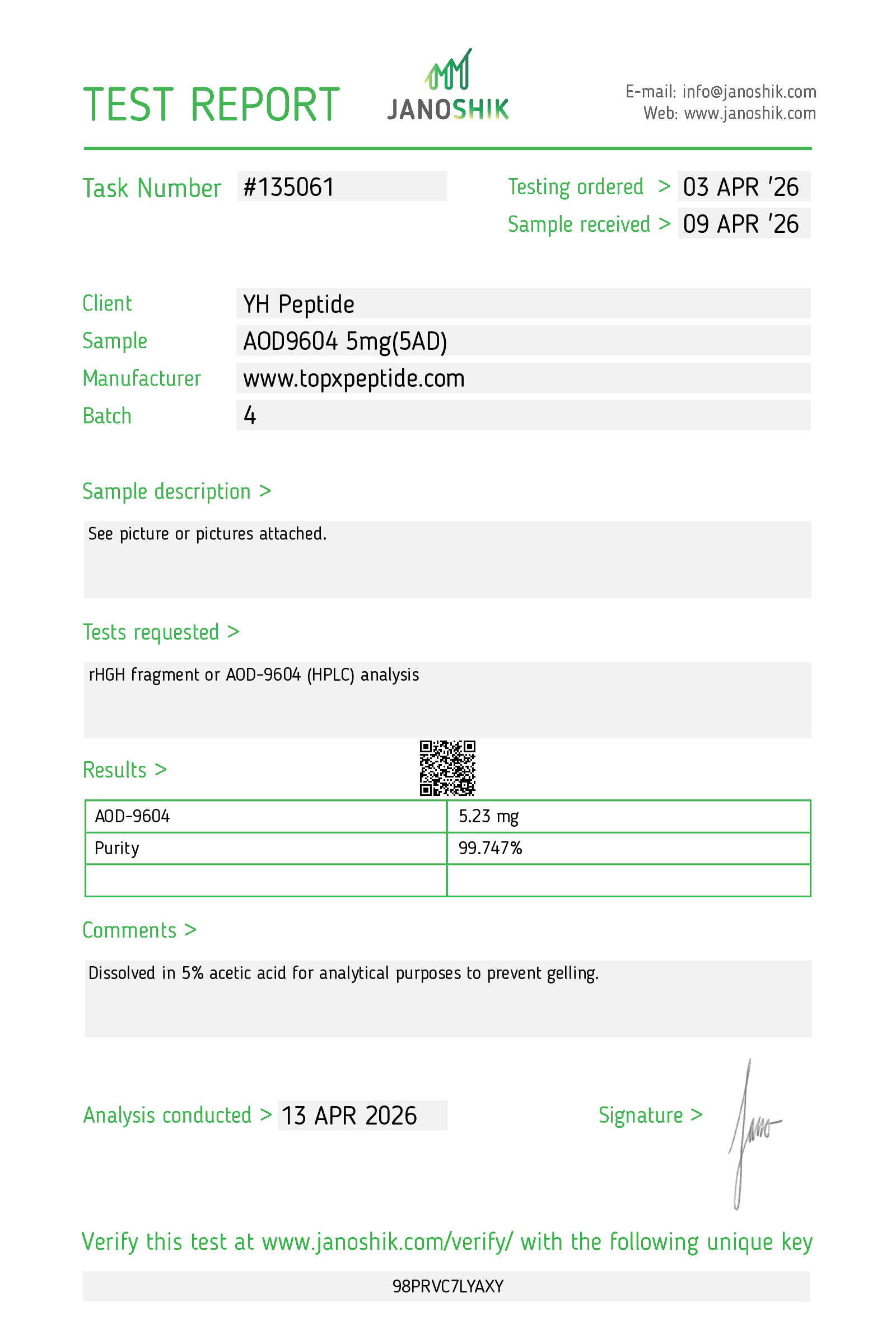 | Hang Sciences | AOD-96045mg | — | — | 04/09/2026 |