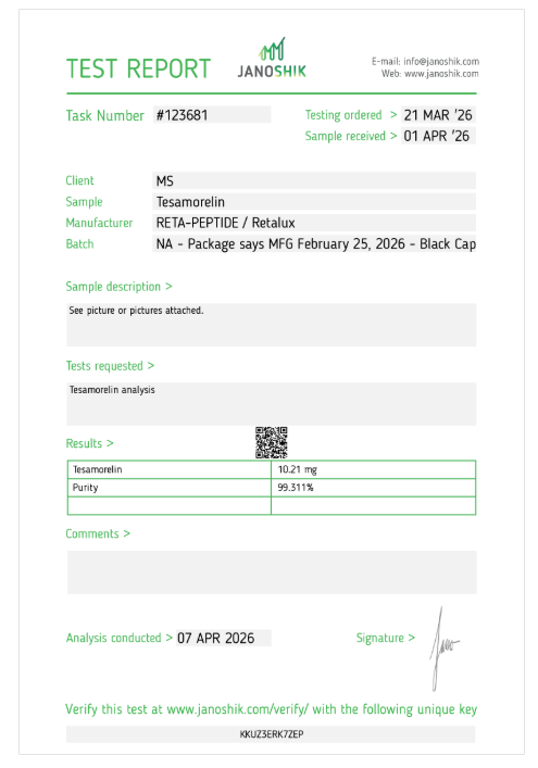 | Retalux | Tesamorelin10mgUser Submitted | — | — | 04/07/2026 |
